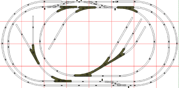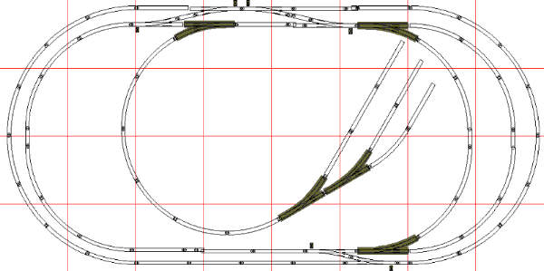 We begin with a simple double loop, with 22" curves outside, 18" curves on the inner oval. Use #4 or #6 switches to link the loops |