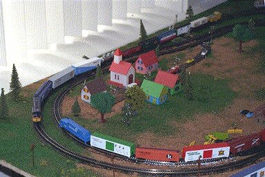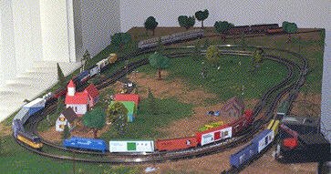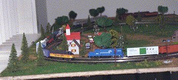 The challenge - build a simple N scale railroad without having the luxury of time to do a picture-perfect job. The goal was to make it sturdy, bright and attractive. I think we did okay, too. The railroad was finished in a couple of two-hour sessions. The methods we used for scenery are those given in our online scenery manuals.