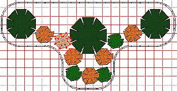 Slight alteration of the previous layout, with placement of plants. |