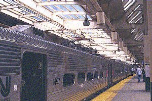 What fun is a railroad station without the trains? Here are three trains which typify NJ Transit's Newark operations, plus one that represented those of the old Pennsylvania railroad.