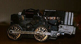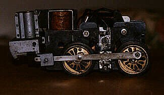 1) Motor: the Marx motor is basically and open-frame, AC motor block. To it are affixed two axles with wheels. There are subtle variations, but the basic design remains the same,. Better grades of train had brass bushings, while the cheapest lines had a bare-bones motor without E unit or lights. Nonetheless, the basic Marx motor remained pretty much the same throughout production.