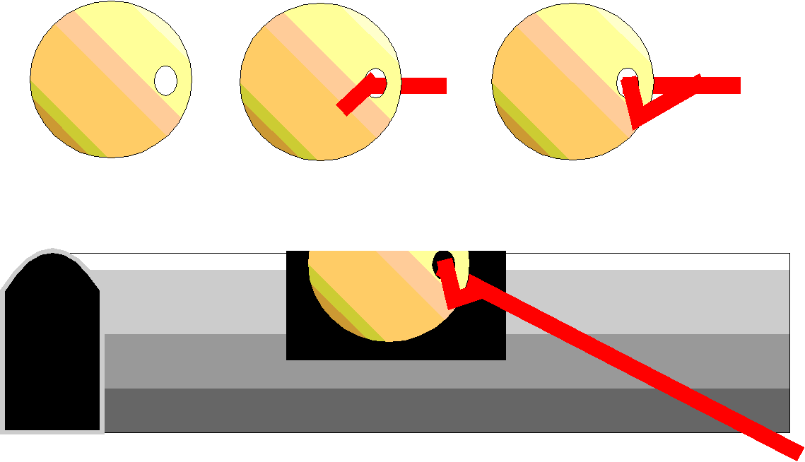 The trick to using older Marx switches with Lionel trains is to inset track pins as shown (red). They must extend without impeding the operation of the switch. |