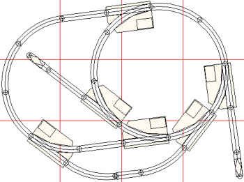 A simple extended loop with one siding. The oval is made wider by cutting 4" straights. (8) Lionel® O27 O-27 curve 45° (1) Lionel® O27 track bumper (3) Lionel® O27 single straight (2) Lionel® O27 O-27 righthand turnout (2) Lionel® O27 half straight (1) Lionel® O27 O-27 lefthand turnout (2) Unknown track section (2) Lionel® O27 cut straight |