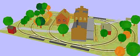 Here is a nice little railway that can accommodate operating accessories, freight and passenger systems. Our example has scenery for a small freight and commuter / trolley operation. (12) Atlas 6043 O27 45° curve (4) Atlas 6050 10.0 inch straight (3) Atlas (6075) lefthand O-36 turnout (1) Atlas (6076) righthand O-36 turnout (4) Atlas 6068 O36 7.5° curve (5) Atlas 6052 1.75 inch straight (3) Atlas 6015 1.25 in straight (2) Atlas 6040 snap-on bumper |