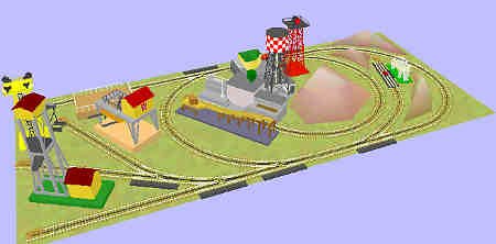 Simple track plan for a small freight shunting operation. There are many opportunities for a hobbyist to add scenery here.