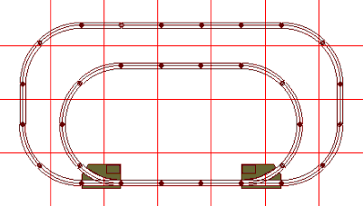 Another reversing track is the track bisecting the lower oval. Entering it, a clockwise train would end up running counterclockwise. The reverse loop in upper right corner would do the same. The reverse track uses same-hand switches, in this example both right-hand. |