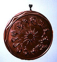 This "tin" is actually a copper pie tin, used for decorative purposes. |