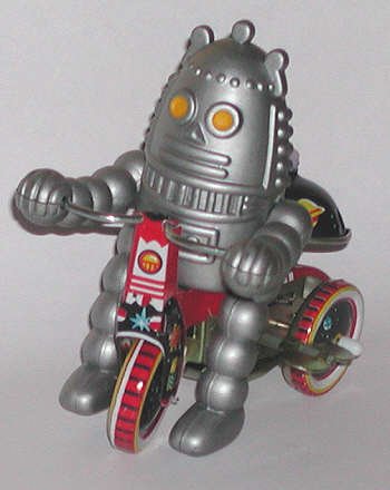 This one was called a "Baby Robot" because it resembles a child on a tricycle. Egg-shaped head and ball-joint arms are like the "Robbie" robot. |