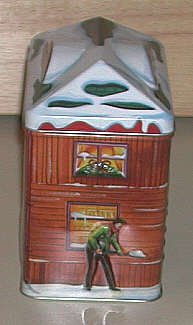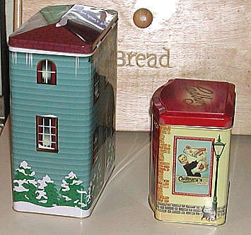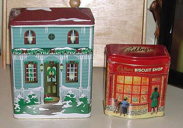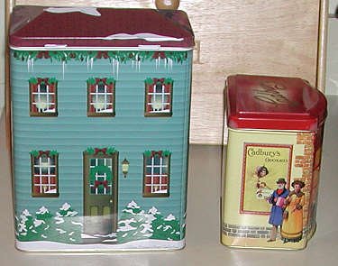 The tin houses depicted here are for popular brands of candy. Hershey and Cadbury have put out tins for several years now.