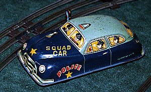 The greatest number of Tin Toys were made up until the 1980s. These were tin-lithographed marvels, decorated with bright colors and filled with simple mechanical features. Many were powered by "clockwork" mechanisms. Winding them with a key turned a coil spring, which then powered a simple motor. Some were battery-operated toys, and others were "friction" type playthings. Today, the toys so common bet a few decades ago are now made by specialty houses for sale as adult collectibles. Here are examples of tin toys.