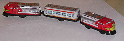 This simple wind-up train was based on a real Santa Fe streamliner. |