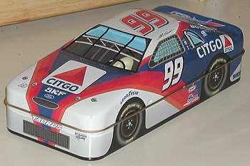 This tin contains a small diecast automobile |