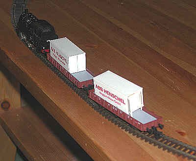 Here are the four-wheeled German flats carrying little containers. |