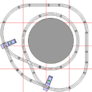 These are small layouts which allow for running a train and setting up a miniature village around it. The grey ball shows where the tree stand would be. The layouts allow for the tree without action. Variuous track plans permit better polacement of ornaments and scenery. We have designed these plans for use with scenery.