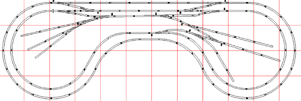 We have used #6 switches to make a passing siding inside the upper straightaway of the inner loop. Sidings have been added inside the layout using #4 switches.Because of the possibility of reversing direction, the upper siding and switch in the right loop will have to be insulated and wired for reversing. If you do not wish to have reversing wiring, omit switches connecting the upper siding with the lower ones extending from the inner loop's lower right center. |