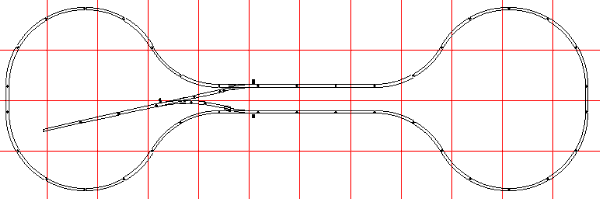 Using #4 switches, we add a siding accessible from both ends. Note: this siding works like a wye, a type of reversing track. The inside switch and track must be insulated off and wired as a reversing track. |