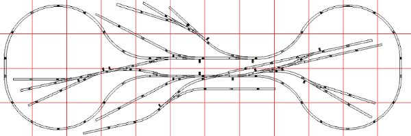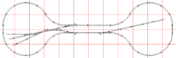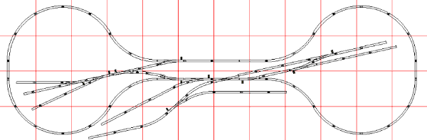 Sidings are added to the inside and lower middle, as well as the reversing wye in the left loop. |