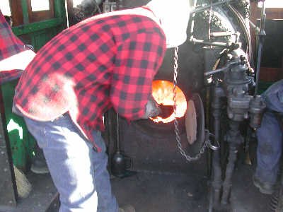 Eric prepares to stoke the boiler |