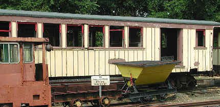Here you see the side of the combine passenger car and the yellow ore dump car. |