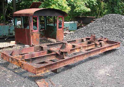 A locomotive cab and frame for a tender. |