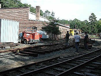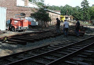 This section is being made dual-gauge, to accommodate both 36" and standard 4' 8 1/2"gauge trucks. It is ths second time dual-gauge track has been laid in the US in fifty years. |