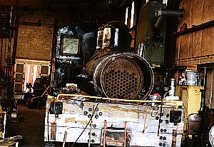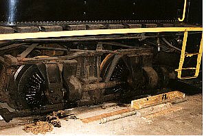 The Shay is a unique steam piston-driven locomotive. It was being restored in the shop when we visited. Due to tight conditions, it was hard to line up a side shot of the entire locomotive