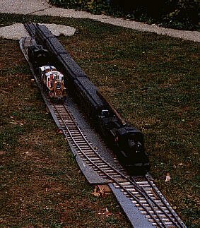 These CNJ heavyweight passenger cars are accurate models of the real thing. |