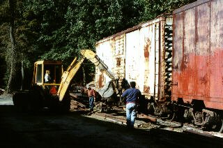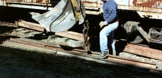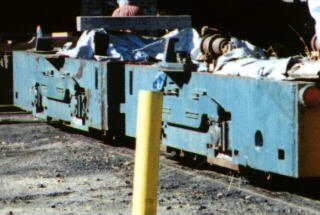 Moving rail - the men were installing track in the car barn. |