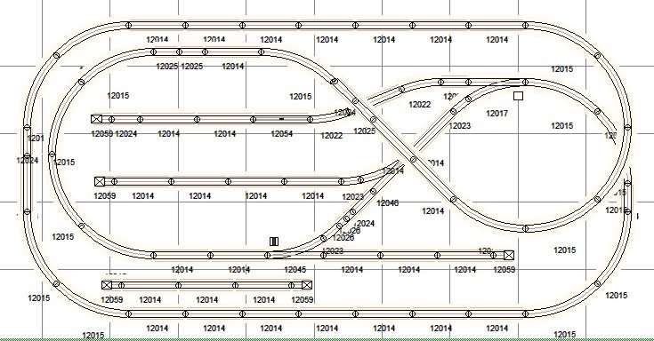 Item list for layout-classic-crossover4x8-fastrack.rrt NUMBER (34) 12014 FasTrack 10 in straight (6) 12024 FasTrack 5 in straight (18) 12015 FasTrack O36 45° curve (1) 12017 FasTrack O36 manual switch left (2) 12022 FasTrack O36 22.5° curve (3) 12023 FasTrack O36 11.25° curve (1) 12054 FasTrack operating track (1) 12046 FasTrack O36 remote switch right (1) 12045 FasTrack O36 remote switch left (2) 12026 FasTrack 1.75 in straight (3) 12025 FasTrack 4.5 in straight (5) 12059 FasTrack bumper (1) 362 Lionel postwar barrel loader (1) 145 Lionel postwar automatic gateman (1) 445 Lionel postwar railroad switch tower (1) 193 Lionel postwar industrial water tower (1) 464 Lionel postwar lumber mill (1) 342 Lionel postwar culvert loader (1) 352 Lionel postwar ice depot (1) 3356 Lionel postwar horse car platform (1) 155 Lionel postwar ringing signal (1) 140 Lionel postwar banjo signal (1) 356 Lionel postwar operating freight station (2) 148 Lionel postwar dwarf block signal (1) 252 Lionel postwar crossing gate (1) 151 Lionel postwar semaphore signal (2) 71 Lionel postwar lamp post (1) 12898 Lionel flag pole |