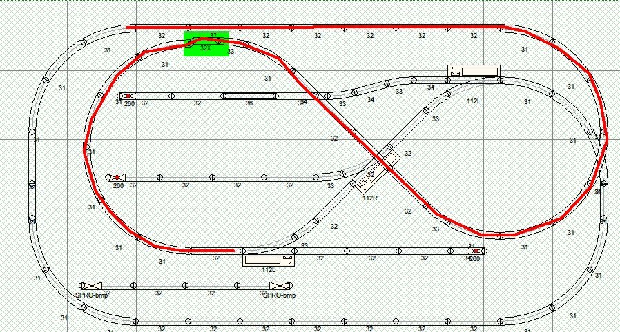 | O (31" diameter) Green line is elevation and grade. Red circles indicate track cut to size. |