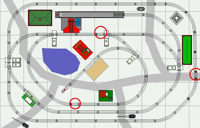 | O27 5' by 8' Circles indicate track cut to size. |
