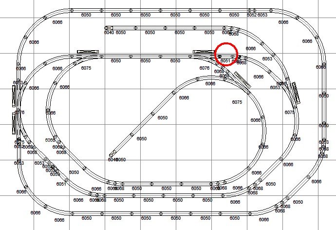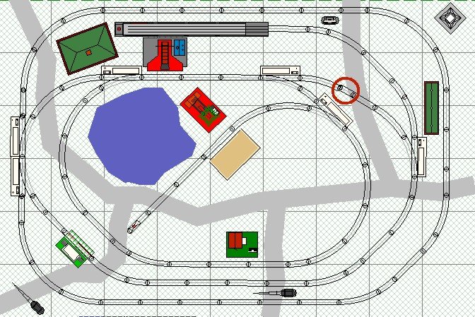 | Atlas O 6' 6" by 9' 6" Red circle indicates difficult connection with track |