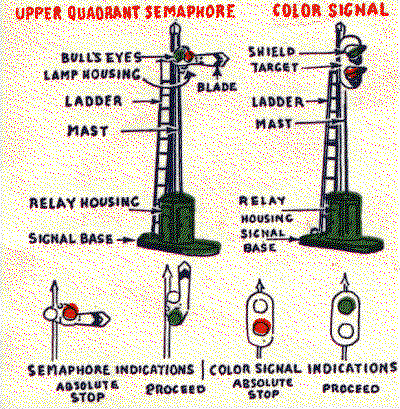 The picture below shows two kinds of signals, the semaphore and the light.