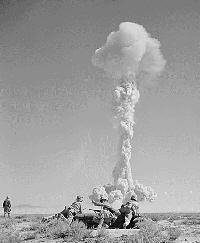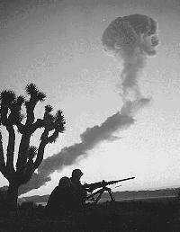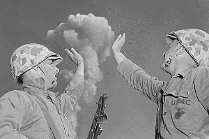 The military had its own take on the bomb. It loved releasing films of tests, including tests where troops were present. We saw photos of Marines and GIs having a fine time watching the bomb go off. Wow! According to the Army, the radiation wasn't than big a deal.....and of course, the Army was wrong on that one. People didn't understand radiation all that well at the time. Even the scientists got it wrong a few times.