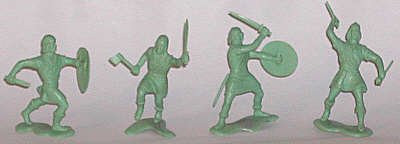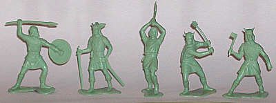 Original Marx 54mm Vikings were cast in this mint green. The set had two sets of Vikings, for a total of 18 Norsemen. |
