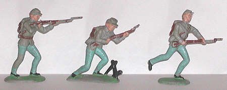 Firing rifleman, advancing soldier, charging rifleman. These are molded in Goober Gray. |