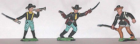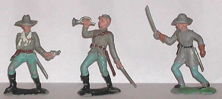 Officer with arm in sling, bugler and officer with sword. Union troops were a matter of changing plastic color to Yankee Blue. |