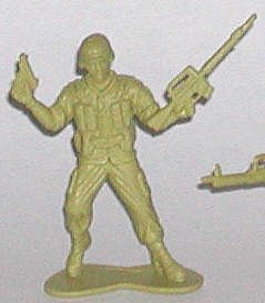 Firing submachine-gun, reminiscent of the German submachine-gunner in the old Marx 54mm set. |