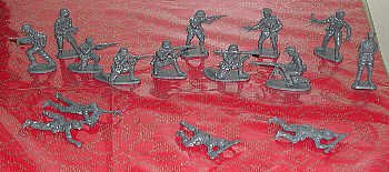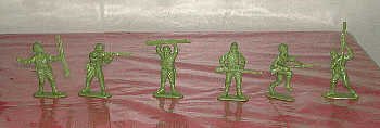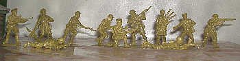 British and Scots - clones of Airfix and Matchbox. Note officer figure, Scots in beanies, and bagpiper. Officer in this set looks like a sailor rather than a soldier. |