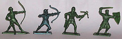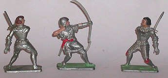 Starlux 60mm figures: unarmored archer, armored archer, crossbowman and knight with sword/ Made in France.. |