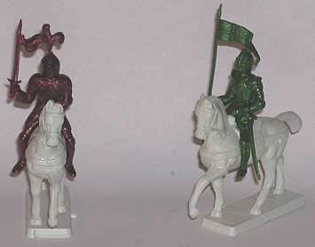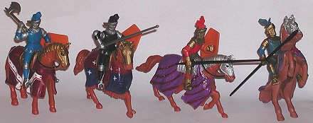 Plastic painted knights by Charbens, about 60mm scale. |