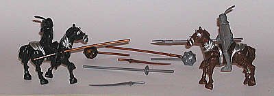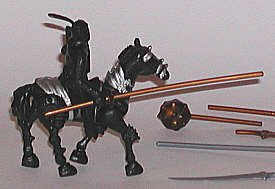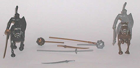 These horses legs are movable! The figures come with an assortment of wicked-looking weapons. |