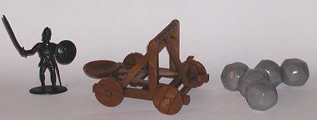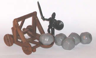 A catapult set complete with crewman and plastic rocks. These are the same plastic rocks found in the "Double Dippin Fun" farm, jungle animal and sea creature from Target. |