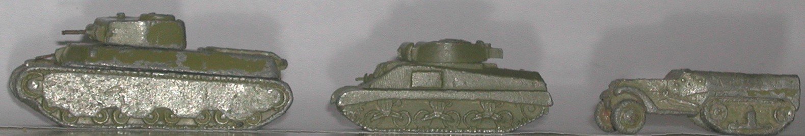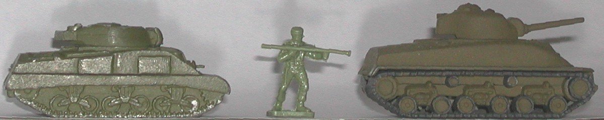 At this time, all of the Authenticast in our inventory is limited to the figures you see here. We would like to have at least one of each pose in good shape. The paint job is less important than the figure itself. We need the German soldier with Panzerfaust, German kneeling shooter, US kneeling shooter, US marching man, US minesweeper, US seated guys and crewmen, Soviet gun and crew, Soviet meachien gun and crew, prove Soviet shooter, kneeling Soviet shooter and advancing Soviet submachine gunner. If you have nay Comet / Authenticast tanks you can spare,we would enjoy using them, too. Paint work is not important. It doesn't matter how bad the paint held up on soldiers to vehicles. It doesn't matter of the vehicles are in pieces. I can work with that. Email me if you can help us. thortrains@comcast.net milihistriot@comcast.net