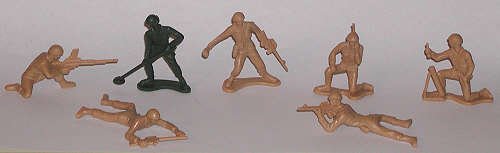 Clones of classic Tim Mee poses. One amusing piece is the M-60 machine gunner. His weapon is an experimental version of the machine gun which was not accepted by the Army. |