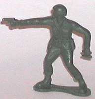 A composite torso on officer's legs. The pistol & hand of the officer were fitted to a straight arm, and the left arm with binoculars were somehow cobbled on. Then a head facing right was added. Voila! A firing officer, assembled a' la Frankenstein! |