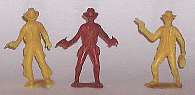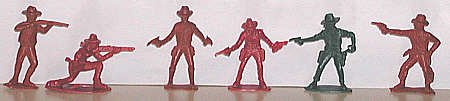 Some MPC cowboys wand Indians were copies of Marx, such as center man with whip. MPC riflemen tend to look awkward, a flaw shared by current BMC figures. |