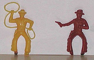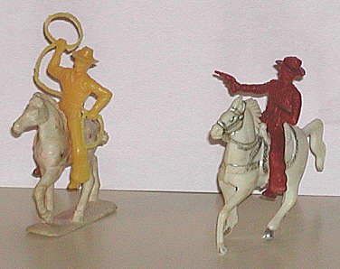 Classic poses: lasso man and pistol shooter.These are mounted figures |