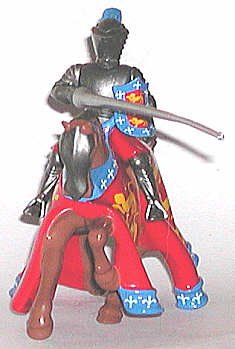 Britains had a premium line of knights known as "Agincourt:," named for the battle during the Hundred Years War, They continue to produce this line of figures, with authentic heraldry. Here are two of these fine diecast knights. The detailed heraldry is exquisite. |