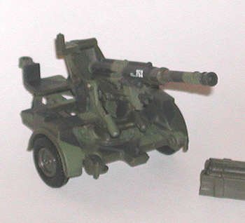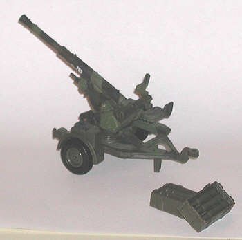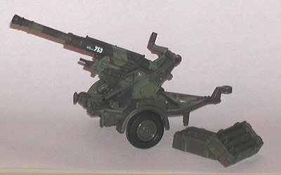 New Ray is a Chinese company ,and is prone to take liberties with fact. Take this interesting gun as a case in point. It looks like an antiaircraft mounting, and in 1/32 would likely be 75mm. As far as I know, the US Army does not have such a weapon in its inventory. There hasn't been a 75mm antiaircraft gun since World War II. Still and all, this is an interesting piece.